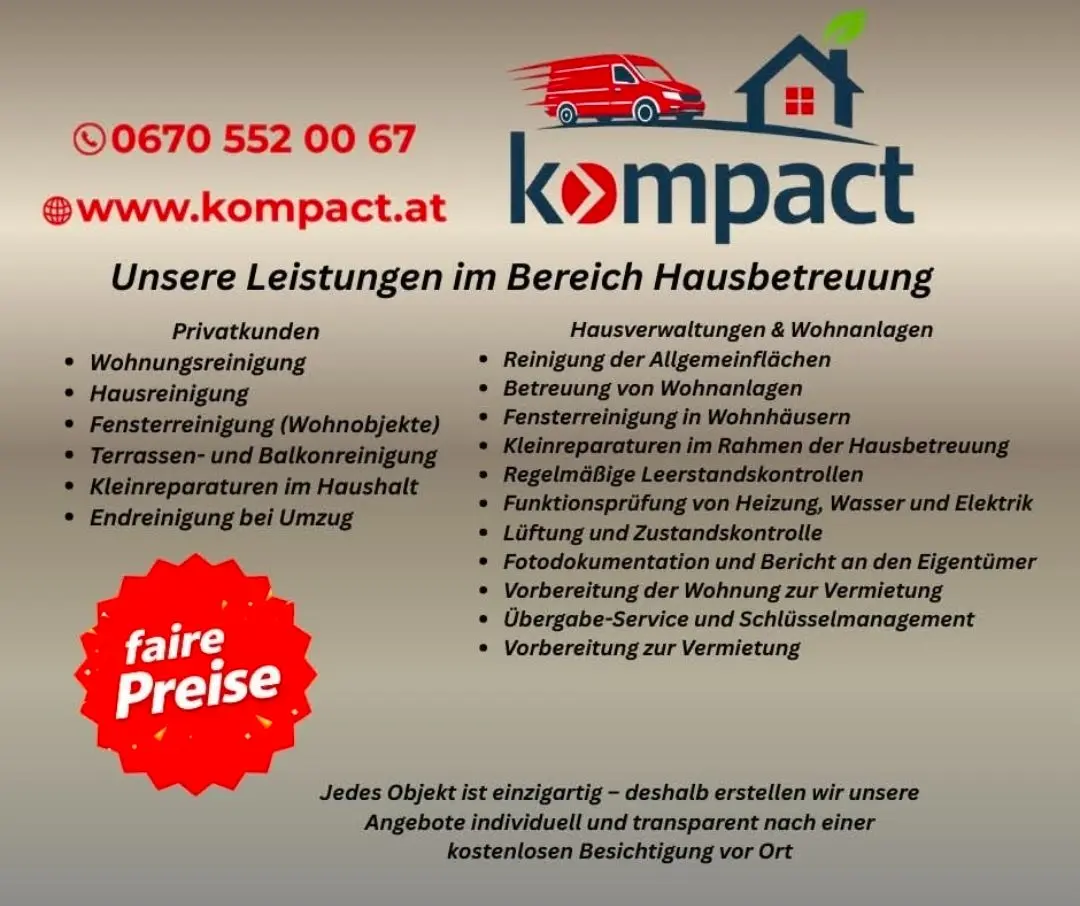Genießen Sie ein gepflegtes Zuhause mit Kompact – Ihrem vertrauenswürdigen Partner für Hausbetreuung.